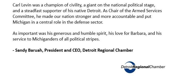 Detroit Regional Chamber Statement on the Passing of Carl Levin, Michigan’s Longest-Serving Senator