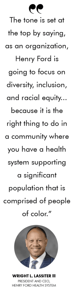 “The tone is set at the top by saying, as an organization, Henry Ford is going to focus on diversity, inclusion, and racial equity not as an entitlement, or simply because I am a Black man,” Lassiter said. “But because it is the right thing to do in a community where you have a health system supporting a significant population that is comprised of people of color.” •