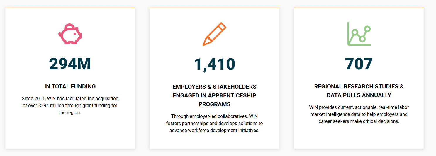 WIN brings together nine community colleges and seven Michigan Works! agencies to help facilitate impactful apprenticeship work United by a shared commitment to workforce development, these organizations combine their expertise to create lifelong career pathways, deliver targeted training for business and industry, and offer a range of degrees, certificates, and stackable credentials that lead directly to employment. Through this collaboration, they also provide robust support for apprenticeships, helping individuals and local businesses thrive in a competitive job market.
