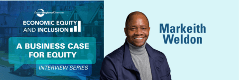 Weldon, a member of the Chamber’s Board of Directors, discussed how Nexusmind was founded to expand enterprise‑level opportunities for underrepresented Black- and Latino-owned technology firms and how economic equity drives innovation, talent development, and regional impact. He also highlighted the company’s efforts to close technology deserts through AI literacy, community investment, and local workforce development. Weldon encouraged business leaders to identify similar equity gaps within their own organizations — areas where they can take consistent, measurable action—and to start by addressing one that aligns with their goals.