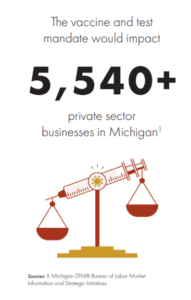But if the largest employers are trending toward requiring vaccines as a condition of employment, or at least frequent testing and other safety protocols, smaller employers are much more likely to take a hands-off approach. As Sarah Miller, vice president of marketing and strategic communications for the Small Business Association of Michigan, puts it, her organization is “pro-vaccine but anti-mandate.”